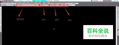 如下图所示,AutoCAD上方工具栏中的默认图形管理器有“图层管理、颜色、线型、线宽”几个选项,下面来依次介绍各个工具的具体使用方法。