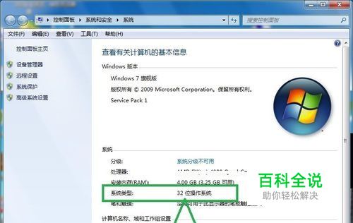 点击“属性”,弹出计算机属性的窗口页面,在页面上我们可以知道我们电脑的系统类型。