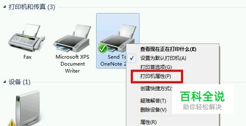 第二步:我们找到我们需要共享的打印机,右键点击,选择“打印机属性”选项。