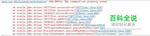 写程序时,有一条查询语句,一运行报错了,错误内容: java.sql.SQLSyntaxErrorException: ORA-00933: SQL command not properly ended