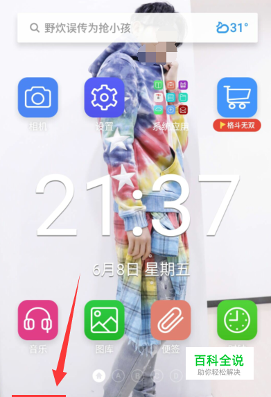 解锁手机进入主屏幕,点击拨打电话的按钮。