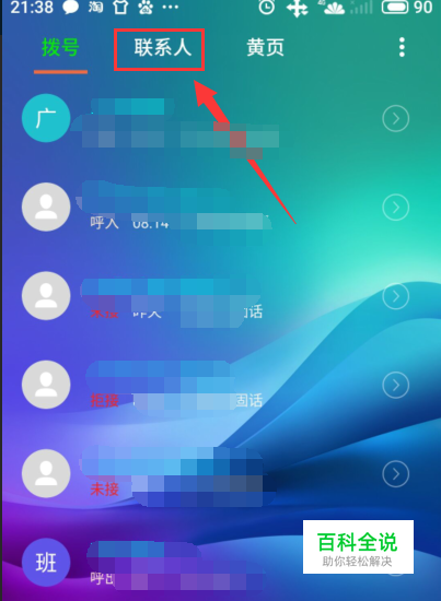 在拨打电话页面,最近通话的页面点击联系人按钮。