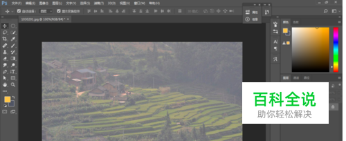将发灰(画面对比度不高)的图片拖入到PS中。