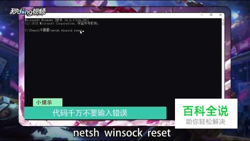 输入代码netsh winsock reset