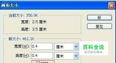 2、点图像一画布大小(调宽:0.4厘米,高:0.4厘米,相对:打√)点确定。如图2所示