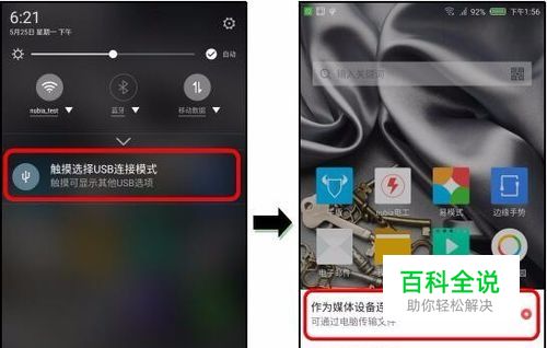 用USB线连接手机和电脑,下拉状态栏,点击“触摸选择USB连接模式”,选择“作为媒体设备连接(推荐)”。如下图