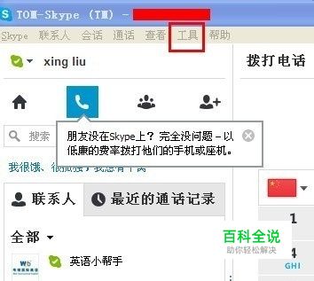 首先登录Skype,点击菜单栏上的工具,然后点击选项。