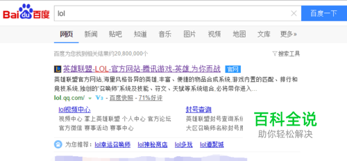 首先,我们通过任何一个搜索引擎来搜索LOL英雄联盟的官方网站,在搜索结果中我们进入到显示的官方网站,而不是其他合作网站。