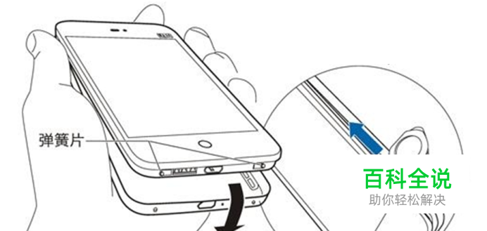 将手机背面朝上,使用专用工具对准“开盖孔”用力往里挤压弹簧片。