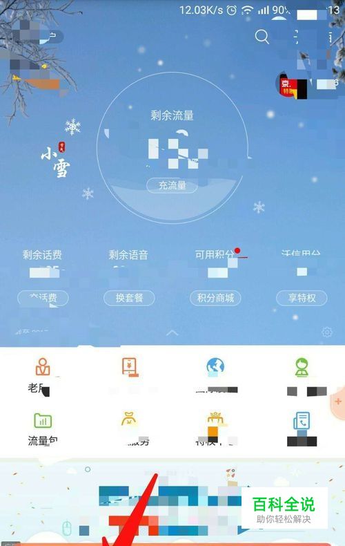 打开手机营业厅软件,点击图示位置,下方的“服务”。
