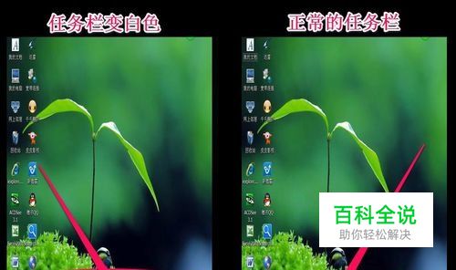 恢复任务栏的方法: 1,现象1:在屏幕下的任务栏突然变成了白色的了,原来是蓝色的,任务栏上的“开始”图标也变了。