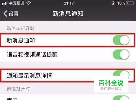我们打开手机微信,接着点击设置——新消息通知——接着将里面的“新消息通知”功能和“通知显示消息详情”功能都开启。