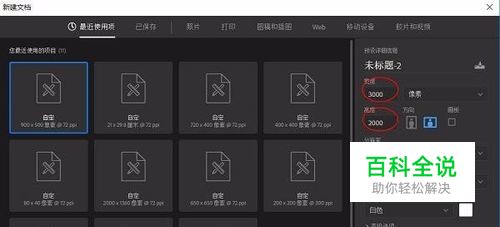 按ctrl+n键,新建一个大小为3000*2000像素的文档
