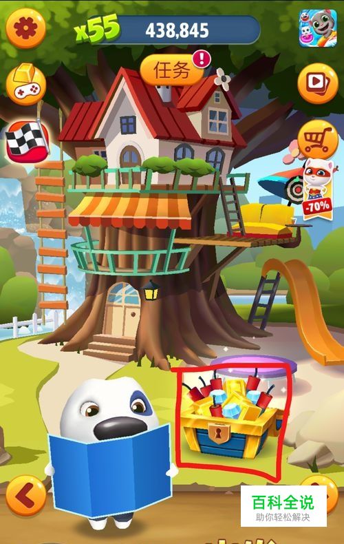 一、看视频获得宝箱 看到那只在看书狗狗的旁边了吗?就是一个宝箱(红色框框处),这里面可以通过看视频获得宝箱,如果有时间的话,可以看看。