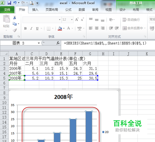 选定表格图表的数据系列(圆柱就是数据系列),如图