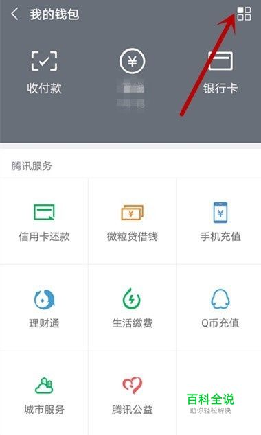 此时页面会切换到我的钱包页面,在我的钱包页面我们点击右上方的【支付中心菜单】图标