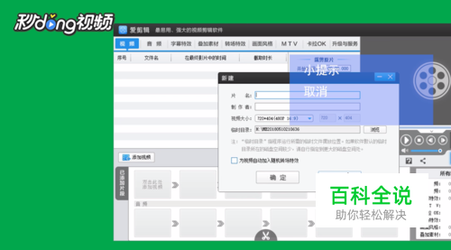 打开爱剪辑软件,在弹出来的新建提示框内点击取消,在选择默认影片设置提示框内点击确定