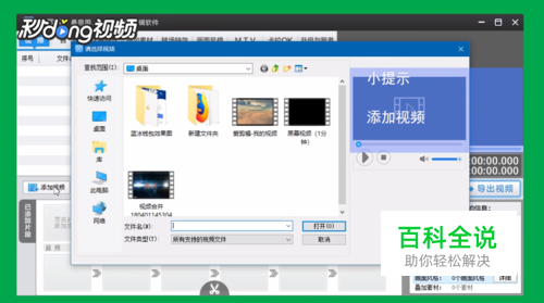 点击添加视频,在本地磁盘上找到要添加的视频,点击选中,再点击打开