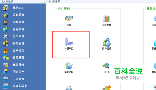 来到金蝶的主页面,点击基础设置,然后点击计量单位选项