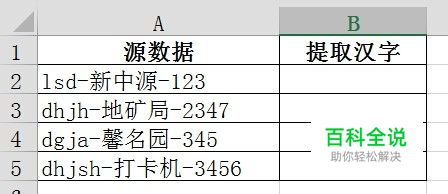 在如上述所述类型的数据后增加一列,命名为“提取汉字”,为提取汉字做准备。