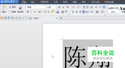 我们直接打开wps文字,输入“陈翔”两个个字。先选中需要放大的这些字,然后word上面的在“格式”工具栏中的“字号”里面输入72以上的数字,比如这里我输入“110”。