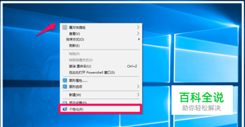 Windows10系统下载和安装应用商店桌面主题的方法 第一步:下载、安装桌面主题。 右键点击系统桌面空白处 - 个性化,打开个性化设置窗口;