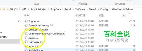 这个时候我们根据我们教程文件查找C:\Users\Administrator\AppData\Local\TslGame\Saved\Config\WindowsNoEditor 就可以看到game.ini这个配置文件了。