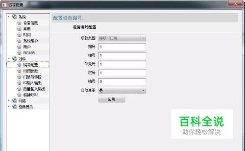 编号配置 配置门口机的期号、幢号等,如果是主门口机编为 0,(如果是从门口机,编号配置为1及以上)