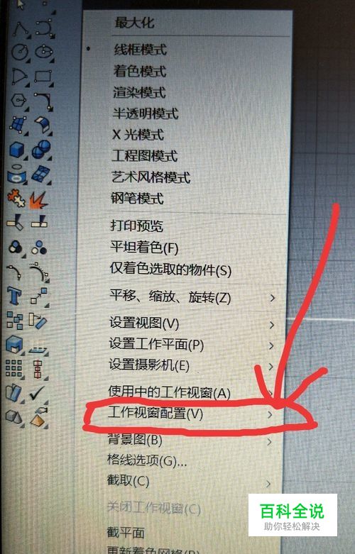 当鼠标移动到“工作视窗配置”,会立刻出现如下图所示的另一个窗口,点击第一个选项“新增工作视窗”,如我在图中箭头所在位置。