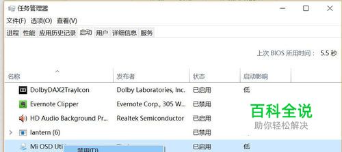 打开Win10任务管理器之后,就可以看到,这里除了有我们熟知的"性能"、"进程"、"用户"等熟悉项目外,还新增了"启动"选项,切换到启动选项,右键点击需要禁用的应用,选择"禁用"就可以了,如下图所示。