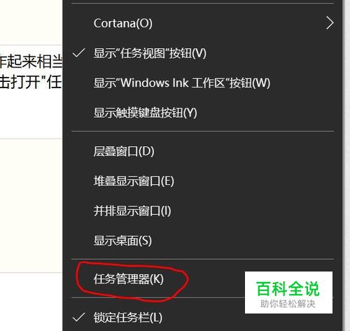 win10禁止应用开机启动的设置放到了任务管理器中,操作起来相当的方便。在Win10任务栏空白处点击鼠标右键,在弹出的右键中,点击打开"任务管理器",如下图。