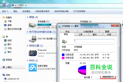 在弹出的对话框上点击“磁盘清理”!