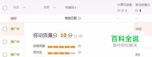 直通车的质量得分因素有3个指标,分别是创意质量、相关性、买家体验,根据我们的经验,通常三个指标有1个满5星以上,质量得分就有可能到10分,三个指标都是5星肯定是10分。