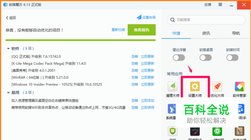 在打开的软媒魔方程序窗口,我们左键点击:设置大师;