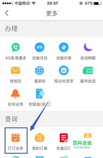 通过手机营业厅查看移动手机已订业务的操作方法。
