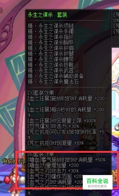 其次呢我们看一下嗜血换装是哪个异界套,没错就是精·永生之谋杀套装的六件套效果。