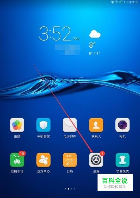 打开华为m3平板后,在桌面上找到设置图标并点击进入,如下图所示。