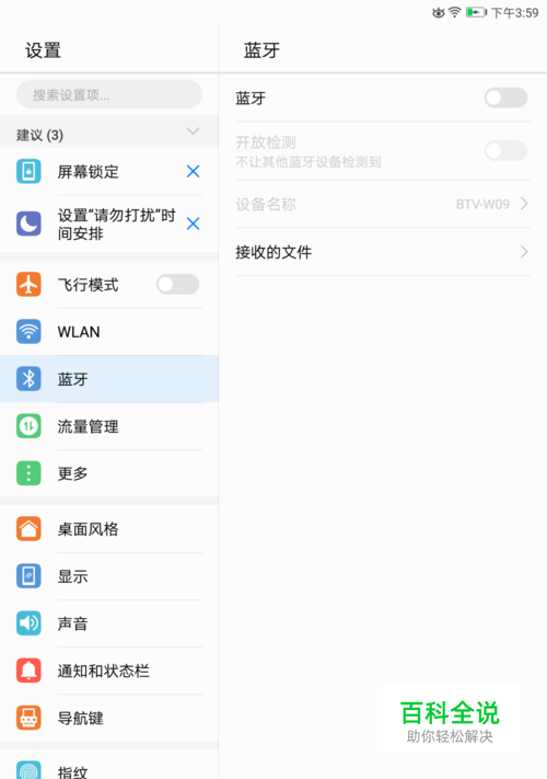 进入华为平板m3设置界面后,用手指向下滑动左侧的导航,如下图所示。
