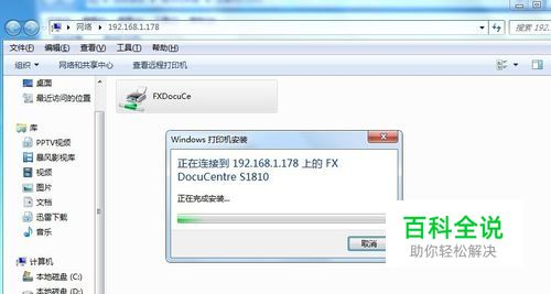 输入完以后点击enter键,就可以看到已经共享的那台打印机,然后双击打印机就会显示正在安装
