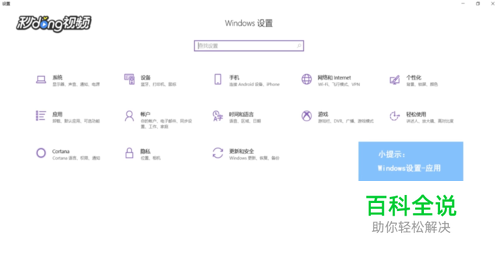 打开windows设置,选择应用。