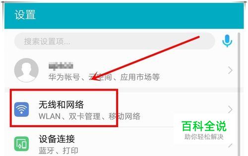 设置页面中,包含了华为手机大部分配置内容,这里,我们找到“无线和网络”选项,点击进入。