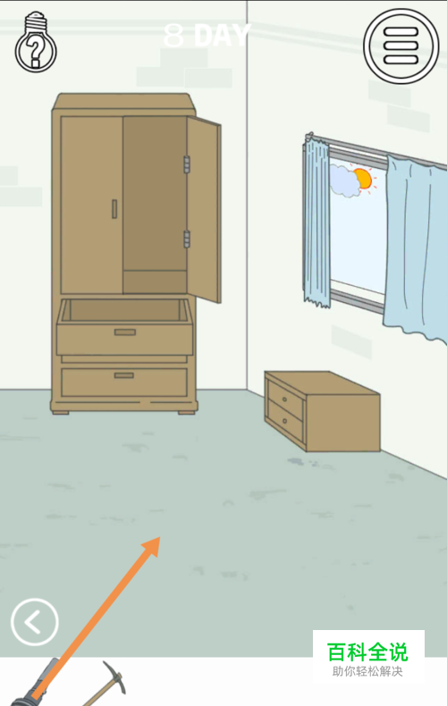 手电筒在地板上照出一个X后,将十字镐拖动到X处,然后点击钱就过关了。