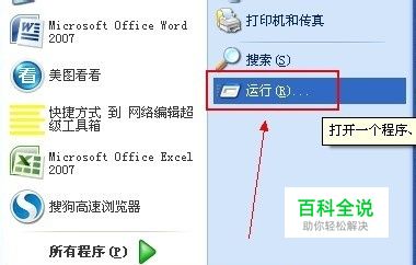 首先点击开始程序,打开“运行”: