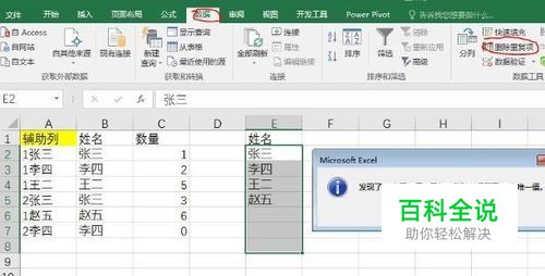 复制姓名列到E列,选择E列,通过“数据”选项下的“删除重复项”,保留唯一值