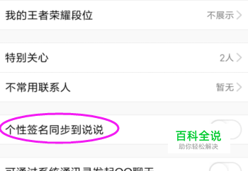 点【联系人、隐私】之后,这个【个性签名不同步到说说】开了,如图。