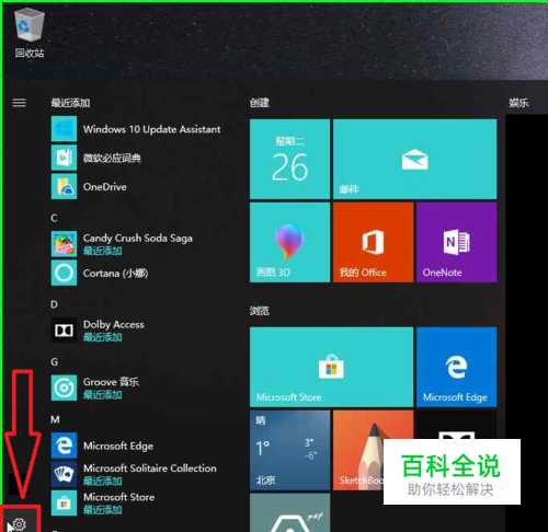 用户在"开始 (列表)"上左键单击设置按钮(在"启动"中),进入电脑设置。