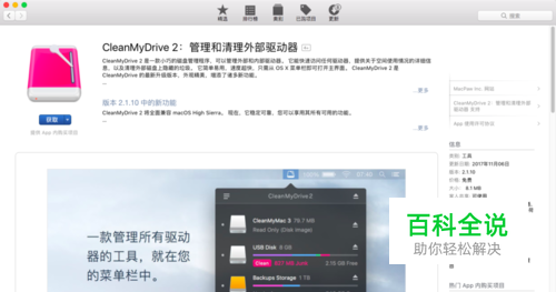 打开APP Store搜索CleanMyDrive应用(也可以直接搜索CleanMyMac,但不知何故,我这里搜不到,一搜就出来了CleanMyDrive,不过没关系,往下看),并下载,该应用支持简体中文哦;