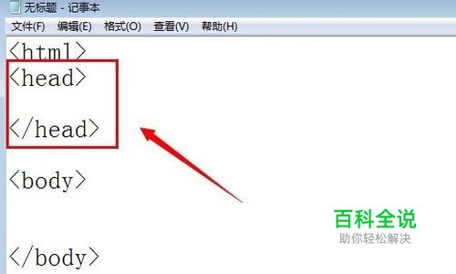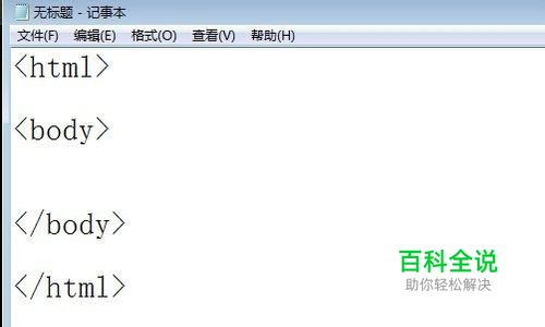 首先打开电脑上自带的记事本程序,然后输入html网页基本结构语句。<html><body></body></html>