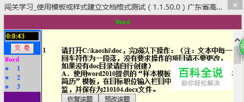 初级电脑考试也会考到这方面的知识,下面小编用一道例题分享一下,如何利用word2010自带模板,快速生成简历。