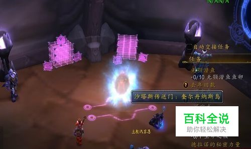进入到沙塔斯之后,我们不用出去,就在传送到的地方寻找下一个传送门,名字叫做奎尔丹纳斯岛。这个地方我们不要进错了,因为在这个地方还有几个传送门分别是传送到各自的主城去的。
